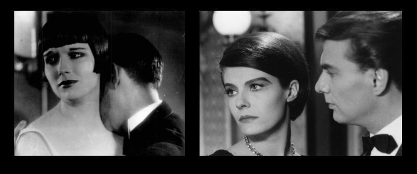 Louise Brooks with her Lulu bob in Pandora’s Box of 1929 and Delphine Seyrig with her wedge cut in Last Year at Marienbad of 1961