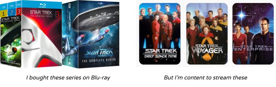 The switch from analog to digital broadcast television signals in the 2000s allowed broadcasters to send out both high-definition signals as well as multiple DVD-resolution subchannels. I could then pick up dozens of broadcast digital channels with my chimney-mounted antenna, although the only time I bothered with that was from 2006-2009 when the old Star Trek original episodes from the 1960s were remastered and broadcast in high definition, plus an occasional PBS program I would record for use in my high school classes.