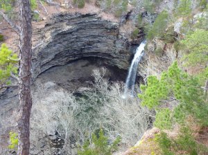 Petit Jean was a French girl whose lover would not let her come with him to America, so she disguised herself as a cabin boy and came along anyway. Her true identity was only discovered when she fell ill and died at this mountain above the Arkansas River. Of course all of that is hogwash. And although it is a splendid hiking trail, Seven Hollows is also a lie. One actually tramps down, through, and around four hollows, not seven. But no matter, as the 4.5 mile hike is quite beautiful even with the bare trees of a Spring Break that doesn’t actually occur in the spring. (A theme is building here.)