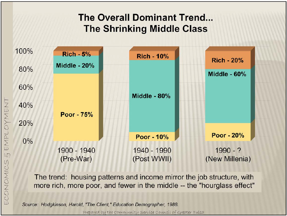 I began teaching in Bartlesville 22 years ago, moving here at age 23 for my first teaching position, one I’ve yet to relinquish. In many ways Bartlesville has changed little over those decades, but in other ways changes are quite noticeable. I was prompted to write this post both by my own anecdotal impressions and a community profile from the regional United Way. I’ll throw in interesting charts from their report throughout; you can click them to enlarge.