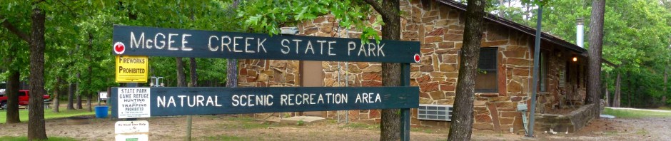 Until this weekend my day hike records show the longest hikes had been 13 miles at both Eagle Creek in Oregon and Queen Wilhelmina in Arkansas and 14.5 miles on the Elk River Trail up in Kansas. On Saturday, May 7, 2011 I set a new personal record with an 18.4 mile long walk in the woods in far southeastern Oklahoma. Between Atoka and Antlers is McGee Creek State Park and 10 miles from there, at the northeast corner of McGee Creek Lake, is the 8,900 acre McGee Creek Natural Scenic Recreation Area. It has 25 miles of trails for hikers, mountain bikers, and equestrians in keeping with its designation as a wilderness-type recreational experience for non-motorized activities. Gas boat motors are prohibited in the area as well, although I saw a boat flagrantly violating that edict, roaring past the Whiskey Flats point more than half-way through the quiet zone.