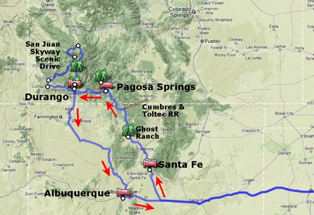 Soon I embark on my annual escape from Joklahoma’s miserable July weather. This trip will be similar to the one I took last year, with me heading out west to visit Santa Fe, New Mexico as well as Pagosa Springs and Durango, Colorado. However, this time I am sticking to I-40 for the trip out and back, avoiding the slower (and, thanks to feedlots, smellier) northern route through Dodge City.