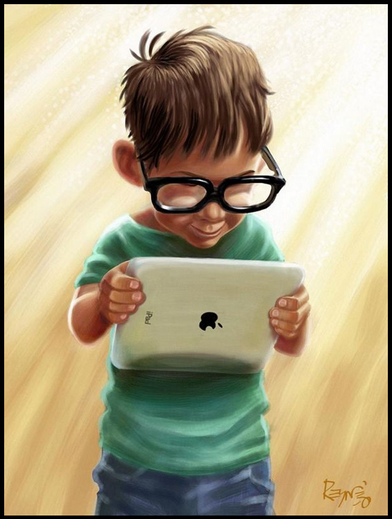 Not only is it a great sketch, but that kid looks a lot like I did in fifth grade. At that age 35 years ago I had to content myself with a pad of paper, not a technological marvel like the iPad. I was using my fingers to bang out class “newspapers” with ditto masters on a manual typewriter, not exploring space or examining elements or using other fantastic tools. What will kids be using 35 years from today?