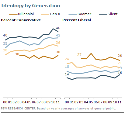 I was interested to read a new study from the Pew Research Center about U.S. generations and their political views. Here are the generational groupings the study used: