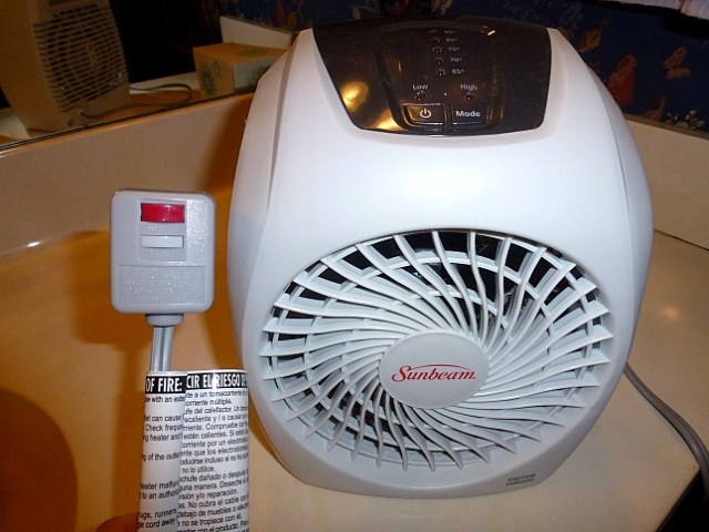 The GFI-protected space heater I used in the bathroom as a temporary solution