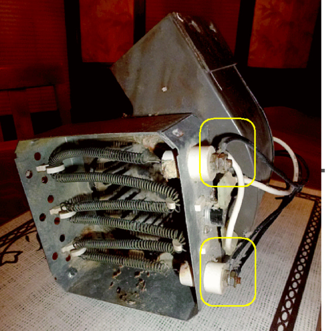 I examined the unit, noting where the two black wires from the motor connected to the heating wire assembly.