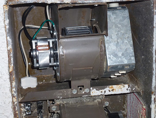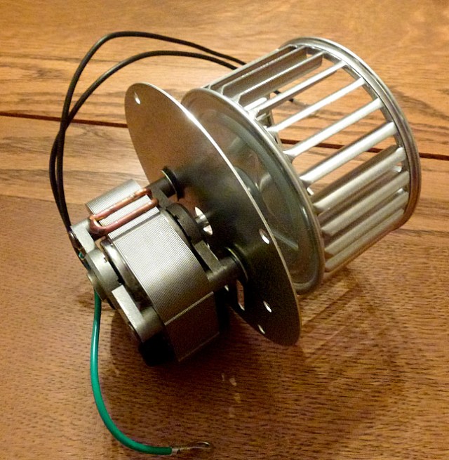 It was a simple matter to remove four screws and take out the old squirrel cage fan and burned out motor. I inserted the new one, attaching the three wires in the appropriate spots.