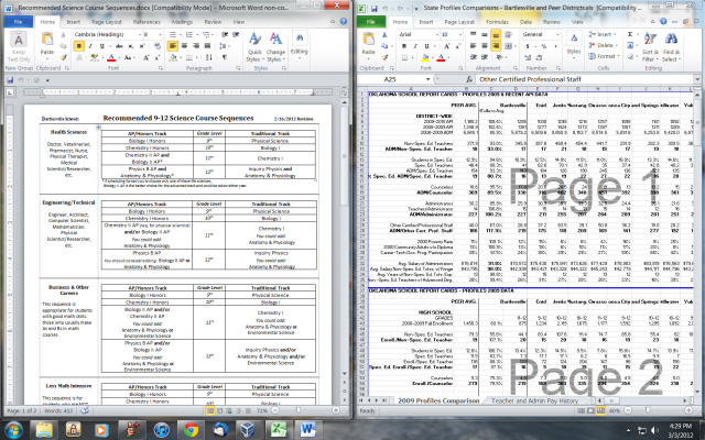 A good polish on the Metro apps, providing visible icons for settings and options, could help immensely, as would visible icons for the right-side charms and left-side task switcher. But I’m left wondering how a Metro app would ever provide me with the wonderful functionality I now enjoy in Windows 7 of having two windows open, speedily tiled with each other by simply dragging a window to the left or right side of the screen.