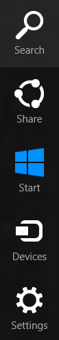 You can pop-up these Charms on the right edge of any screen by placing your cursor on the top right or bottom right corner of the screen or by pressing WINDOWS-C