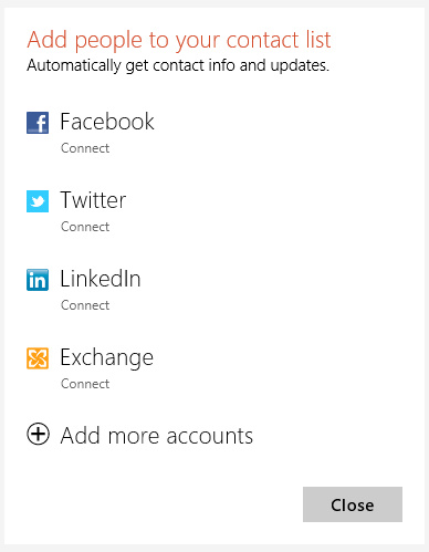 When I clicked on Mail, it defaulted to asking me for an Exchange account’s info. I fed it my school’s Exchange info, but it then complained about me needing to enable various security settings. Even after agreeing to them it could not interface with the school’s Exchange server. That would be far too useful, wouldn’t it? I’d suspect that our Exchange server is not set up to support this sort of convenience, but if it someday would interface properly with Windows 8 that would be a godsend over having to use the WebMail interface.