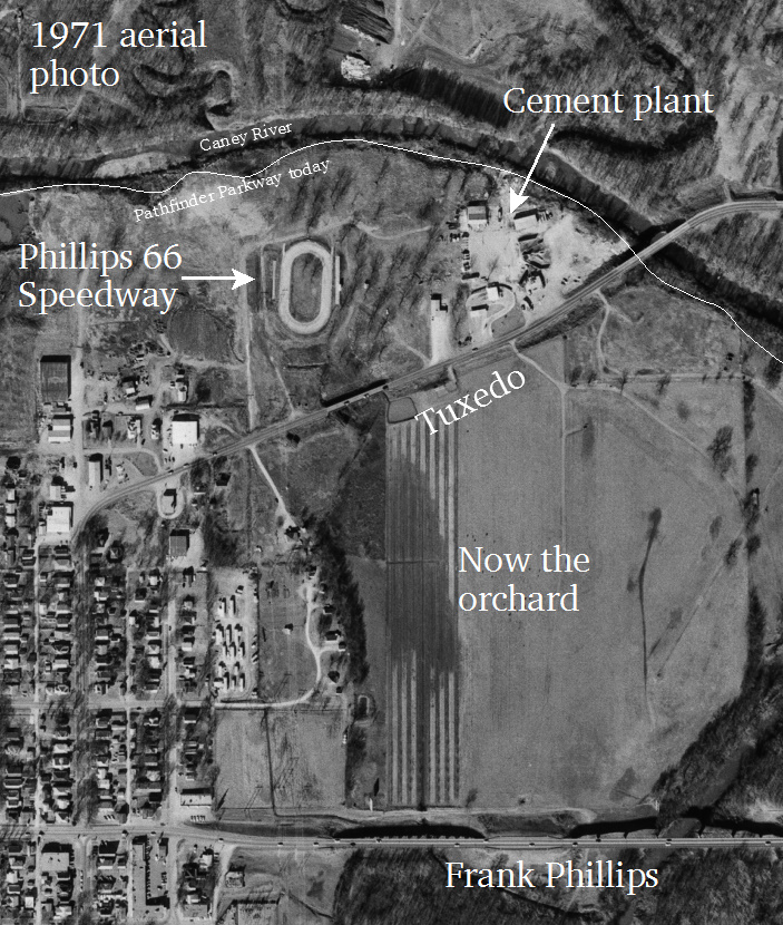 The speedway is just south of my favorite bench on the Pathway, with horses grazing on the property immediately west of the former speedway. The area is along the power line route leading to and from the big PSO plant just south of Frank Phillips Blvd.