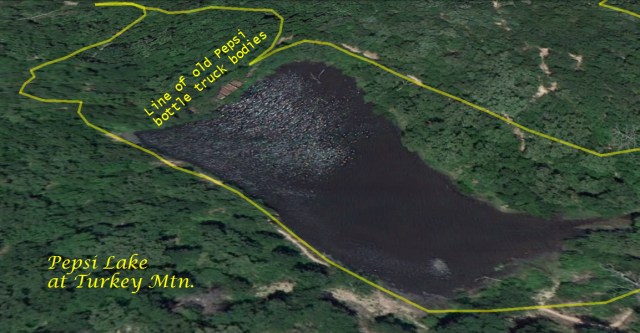 I’d never heard of that name before, but a new sign proclaimed it so. I had steered us to the lake/pond to show my friends the weird row of abandoned truck bodies parked shoulder to shoulder along an old road on its northwest edge. A little online research later revealed those to all be old Pepsi bottle truck bodies from the nearby Pepsi plant, which explained the nomenclature.