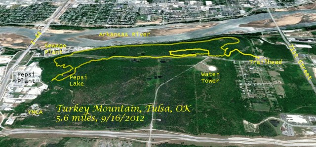 As I mentioned yesterday, the return of cooler weather has lured me back out onto the trails. This past weekend two of my fellow teachers joined me for a hike down in Tulsey Town. Our initial goal was the Oxley Nature Center, but the road in Mohawk Park was blocked by some sort of run by military reservists.