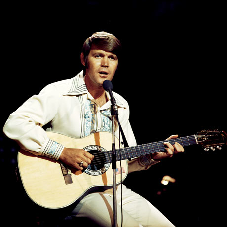 Glen Campbell also fell in love with music as one of many children of an Arkansas sharecropper family which was impoverished in material goods but rich in music. Glen’s father bought him a $5 guitar at Sears when Glen was four years old. Glen became an accomplished public performer, dropping out of school when he was 16 to seek a musical career out west. He was one of the Los Angeles, CA session musicians termed The Wrecking Crew, playing on over 600 tracks for artists from Frank Sinatra to the Beach Boys, filling in for Brian Wilson for six months.In 1967, Glen’s solo career skyrocketed. He racked up an amazing four Grammys, with his performance of John Hartford‘s Gentle on My Mind winning two in the country & western categories and Jimmy Webb‘s By the Time I Get to Phoenix winning two in pop. In later years he won more Grammys and other music awards. Hits you might recognize include: