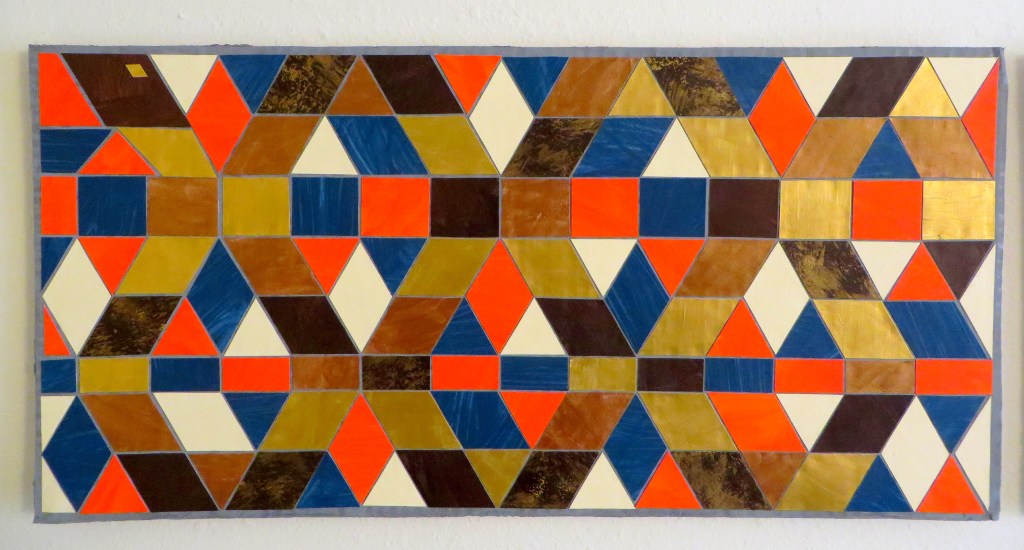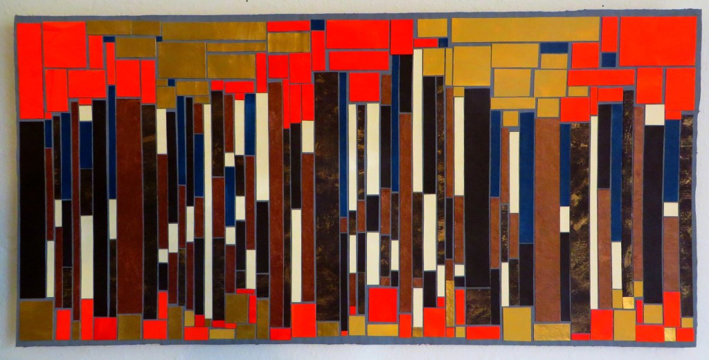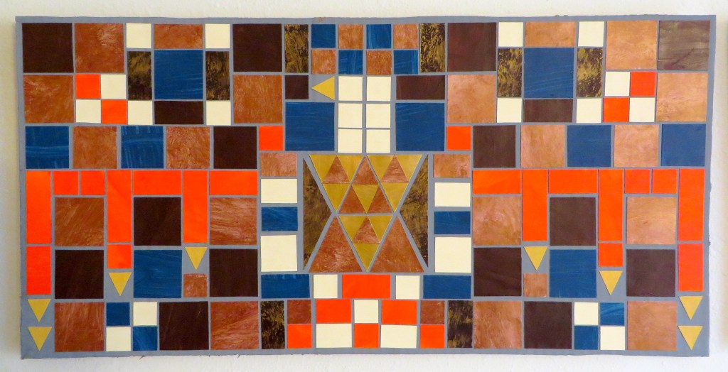 Myself, I am a great admirer of Wendy’s own creations. Just before we left for Kansas City, she completed her third paper mosaic, depicting a bear hidden amongst autumn trees. It joins her earlier depiction of a winding snake and a thunderbird, all originally inspired by the tile work we saw this summer at Albuquerque’s KiMo Theatre.