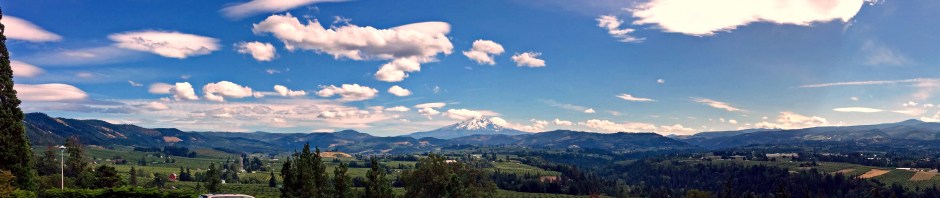 Before reaching Hood River, we turned off the interstate to see Mitchell Point. Before the scenic road was destroyed, there was a tunnel here with many windows looking out over the Columbia. The rock here is very fragmented and unstable, so it is not too surprising that the tunnel did not last. We raced along to Hood River, where we turned off the road and headed south to a spot I hadn’t visited before: Panorama Point County Park and Viewpoint. From there we could view 15,000 acres of orchards and vineyards as we gazed south towards Mount Hood.