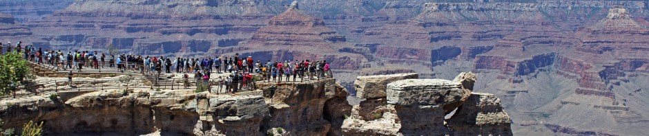 Another shuttle bus ride took us to Grand Canyon Village, where there are several lodges. I’d checked on rooms there many months back, but they were all booked up, and the crowds along the rim and in the lodge lobbies made me glad we stayed at the Best Western in Tusayan.