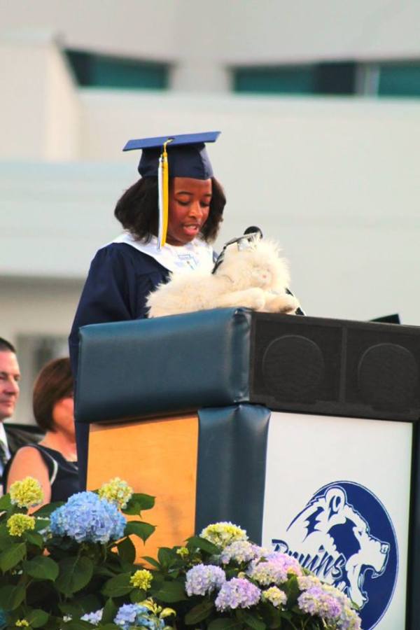 Sr. Class President said at the Class of 2017 Commencement it was time for Fluffy to graduate