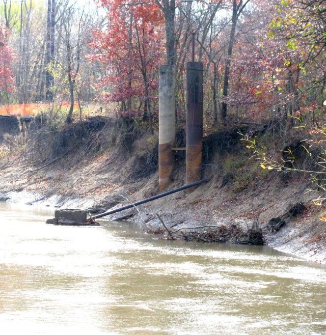 Interurban bridge pilings on the Caney River near Frank Phillips Boulevard