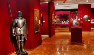 The main galleries now feature vivid red walls for the many paintings, with scatterings of armor, weapons, and other artifacts. A docent was interacting with a group of young children about Giulio Romano’s painting The Adoration of the Magi; later one of the brothers showed them other works.