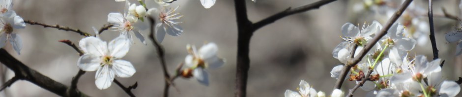 The Chickasaw plum trees were in bloom up on Bromide Hill. Prunus angustifolia is also called the sand plum and ranges from Nebraska to New Jersey on the north and from New Mexico to Florida on the south. A member of the rose family, its white flowers emerge in March in Oklahoma just before the leaves emerge. The tree produces yellowish to reddish fruit in early summer. The Sac and Fox used to boil its root bark to treak canker sores and diarrhea.