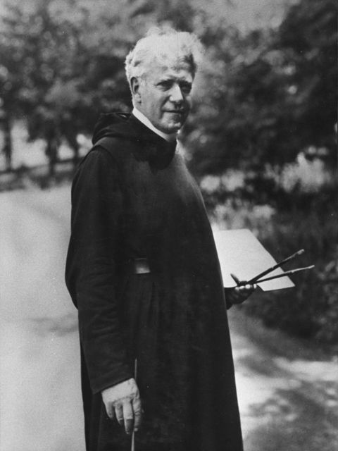 Later that year he met the abbot of Sacred Heart Mission in Shawnee, which later became St. Gregory’s, and took the train to Purcell and then a 40-mile trip by prairie schooner to the Mission to become a monk who was given the religious name of Gregory. Eight years later he was sent to Rome to study art. Gerrer traveled throughout Italy and the Near East during his time in Rome, including a mission to the Holy Land. He entered a competition of artists to paint the official portrait of Pope Pius X, and Pius selected Gerrer’s portrait, saying he chose it because Gerrer painted him true to life and did not minimize his facial warts.