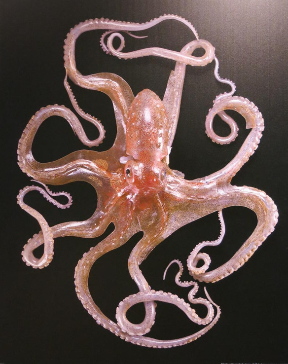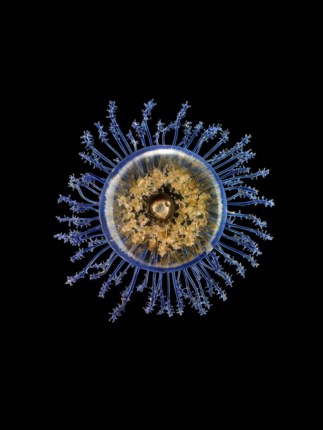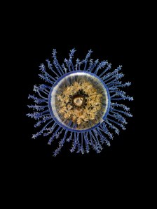 French photographer Guido Mocafico was photographing jellyfish in aquaria. While researching jellyfish online, he kept stumbling across images of the glass models, mistaking them for the real thing. So he decided to travel across Europe, taking photos of Blaschka marine models, using an array of backlights to make the sculptures glow as if lit from within.