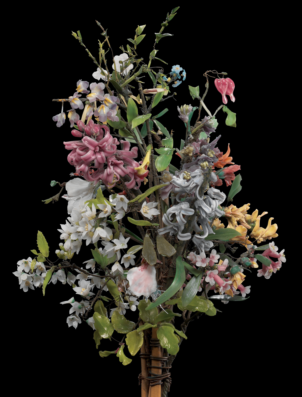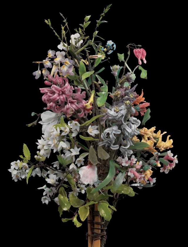 Leopold’s hobby caught the attention of Prince Camille de Rohan, who invited Leopold to his castle. From 1860-1862 he commissioned Leopold to produce about 100 models of nearly fifty species of orchids based on specimens from the Prince’s greenhouses. The Prince then displayed them on two artificial tree trunks in his palace in Prague. The prince also introduced Leopold to Professor Ludwig Reichenbach, the director of Dresden’s Royal Natural History Museum and Botanical Garden, who displayed the models in the garden’s pavilion in 1863. The glass orchids were later lost in a Belgian museum fire, but a bouquet of flowers which Leopold crafted in that era, shown below, survives.