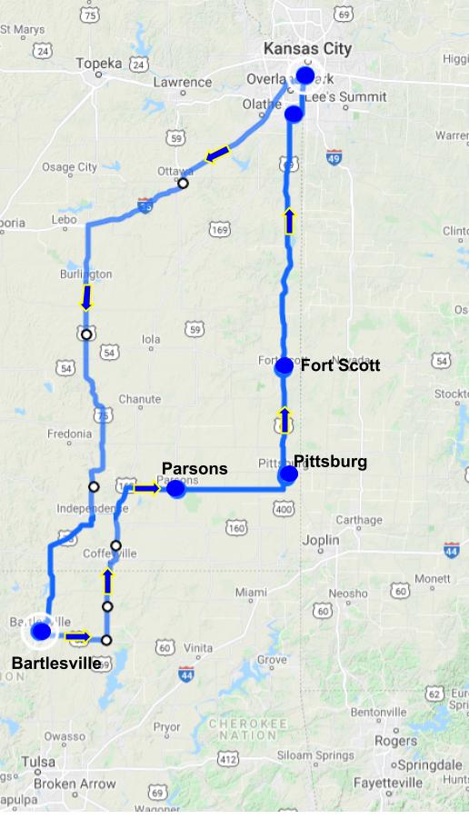 For us, it is about a four-hour drive north-northeast from Bartlesville to the City of Fountains. I don’t find any of the obvious routes scenic or memorable. (Sorry, Kansas.) I seldom take the simplest route using US 75 and I-35, as I find it particularly boring. So I usually divert east at Independence to take US 169 up to I-35. You see more towns that way, although I dislike the route from Paola to Olathe. I wanted to see some new things along our escape route on this venture, reserving the boring route along I-35 and US 75 for the return home a couple of days later.