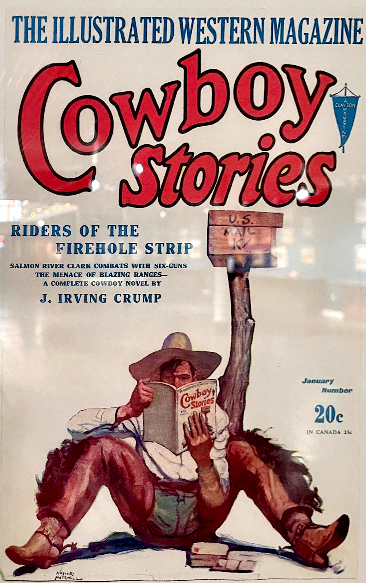 I enjoyed the accessible work by A.R. Mitchell, which emphasized story. In a 1973 interview at the National Cowboy Hall of Fame in OKC, he remarked, “My cover paintings had but a few inches of space and seconds to talk the potential reader into spending his nickels…a good cover, whether on a pulp or a slick, had to talk.”