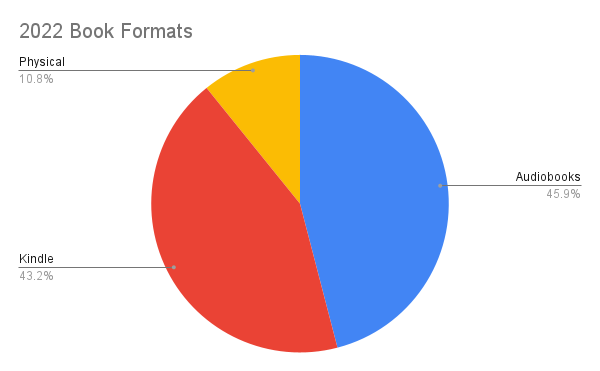 It is no surprise that my reading peaked in 2020, as that was the year of pandemic lockdowns and highly circumscribed travel before vaccines were available. I moved our covered patio swings onto a deck at the side of our yard and have spent many hours out there from spring through autumn, reading my Kindle Voyage or listening to an audiobook. The daylight glare prevents me from using my iPad, thus freeing me from the distractions of YouTube and web surfing. I finally stopped tracking my day hikes in 2022, focusing much more on weekend walks and photography along the Pathfinder Parkway trails in Bartlesville during the warmer months.