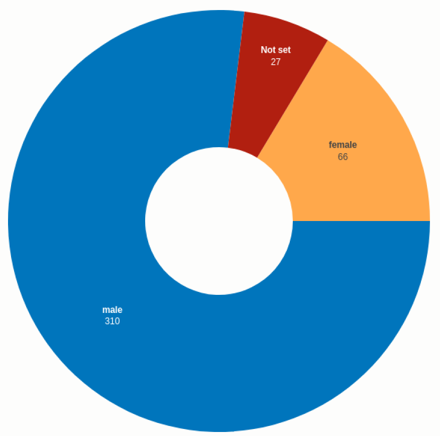 I have never paid much attention to the gender of authors, and grew up voraciously reading both boys’ and girls’ adventure series. But my early interest in golden age science fiction meant that I read a lot of fiction by males, while all of my favorite mystery authors are female. Here is the gender breakdown across my entire LibraryThings database: