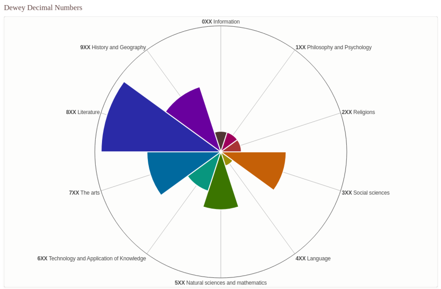 And if we delve into the nonfiction categorization, we see that I particularly enjoy literature, the arts, and history and geography, while avoiding philosophy and psychology, religions, and language. But I did recommend three philosophy and religion books, and I enjoyed Asimov’s Guide to the Bible.