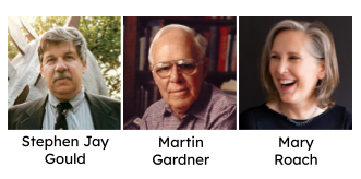 My all-time favorite science writer was Stephen Jay Gould, a paleontologist polymath whose collected columns were a treasure trove, and it was an honor to meet him at a National Science Teachers Association conference in the 1990s. Another great favorite of mine is Martin Gardner, another polymath and a renowned skeptic. And there is no funnier science writer than Mary Roach. Some more information is in the recommendations section of this website.