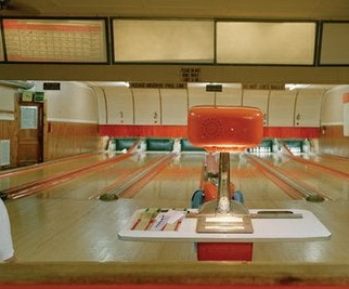 Windsor Lanes had long counters behind the lanes along the edges of an elevated platform in the middle of the building, with 20 lanes to each side. The loaner bowling balls were stored in racks on the side of the counters facing the alleys.