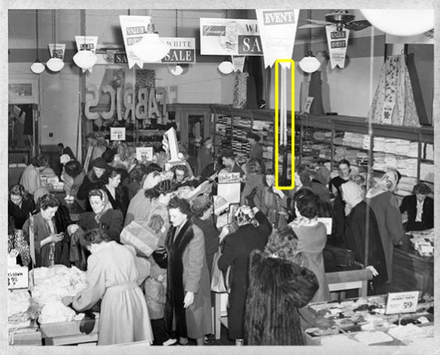 One memorable feature of Anthony’s in the old days was that the money was handled in an isolated office away from the sales floor and counter. Inbound cash, checks, and charges were placed in cylinders and sucked away in pneumatic tubes to a cash room, where checks and charges were processed with change and receipts returned via the tubes. I remember one of the former principals of Bartlesville High School sharing that she had once worked in an Anthony’s cash room at the hidden end of those pneumatic tubes which fascinated children like me.