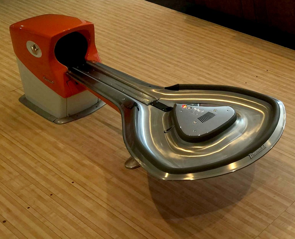 I liked how the automatic pinsetters had lights telling you which pins were in place, making it easier to do your hand scoring. There were also 1 and 2 lights on the side to indicate which part of a frame you were on, and the light under the crown would light up when you had a spare or strike. Now, of course, all scoring is fully automated.