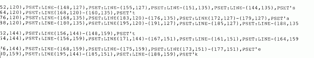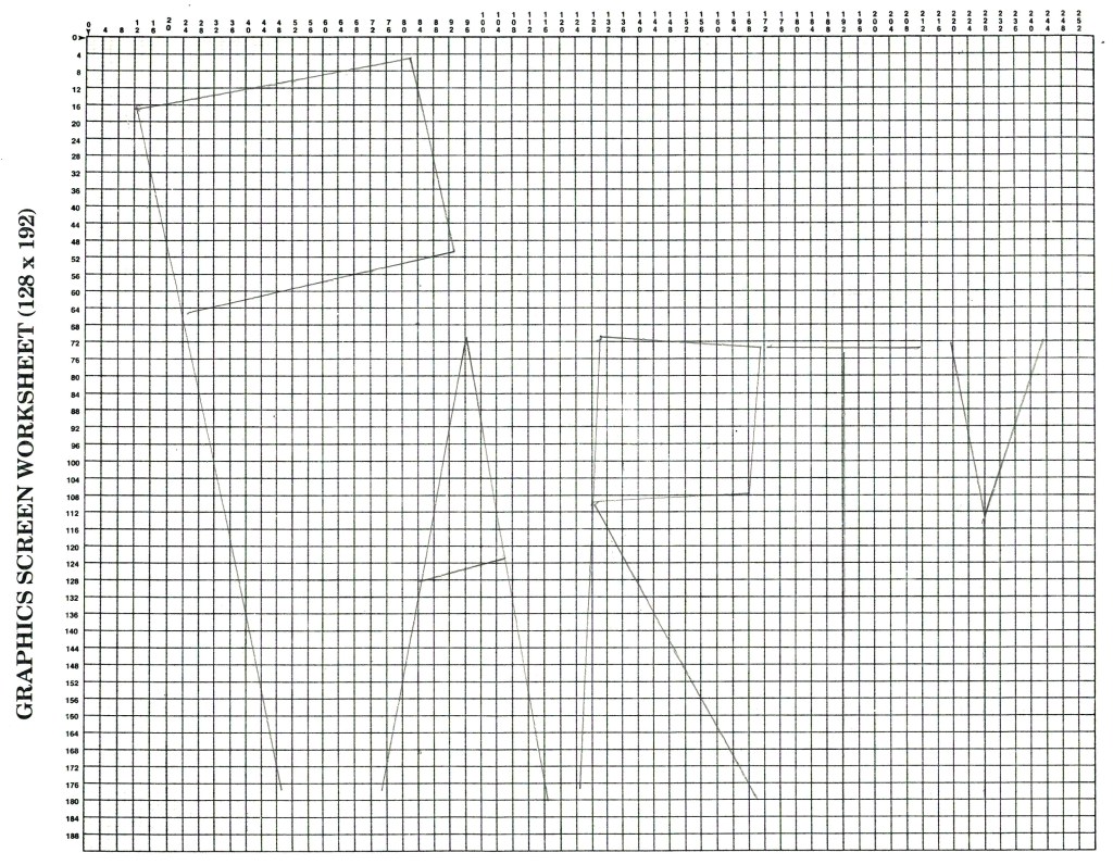 In the early 1980s there was no PowerPoint. But I had a TRS-80 Color Computer, so I programmed the graphics in Extended Color BASIC. As I did with other graphics programs at the time — including many focused on Star Trek, The Original Series — I drew on pixel paper the imagery. Then I hand coded the coordinates of the line segments, shapes, and paint fills. I still have those paper layouts from almost forty years ago.