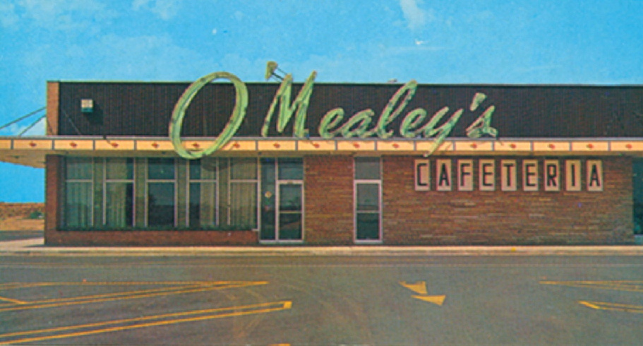That O’Mealey’s was sold in 1980 to two former Furr’s Cafeteria managers and renamed Farm Cafeteria. That died within a couple of years, and the space was leased to further expand the adjacent C.R. Anthony store. The last O’Mealey’s closed in 1982, although Harvey and his wife, Patricia, ran a pastry shop until 1994. Harvey logged 65 years of perfect attendance at the North OKC Rotary Club, and he and Patricia were ambassadors for Bricktown and Chesapeake Arena. Green was a favorite color of theirs, and I remember it being the color of their sign as well as prominent in the interior of O’Mealey’s. They both passed away in 2020.