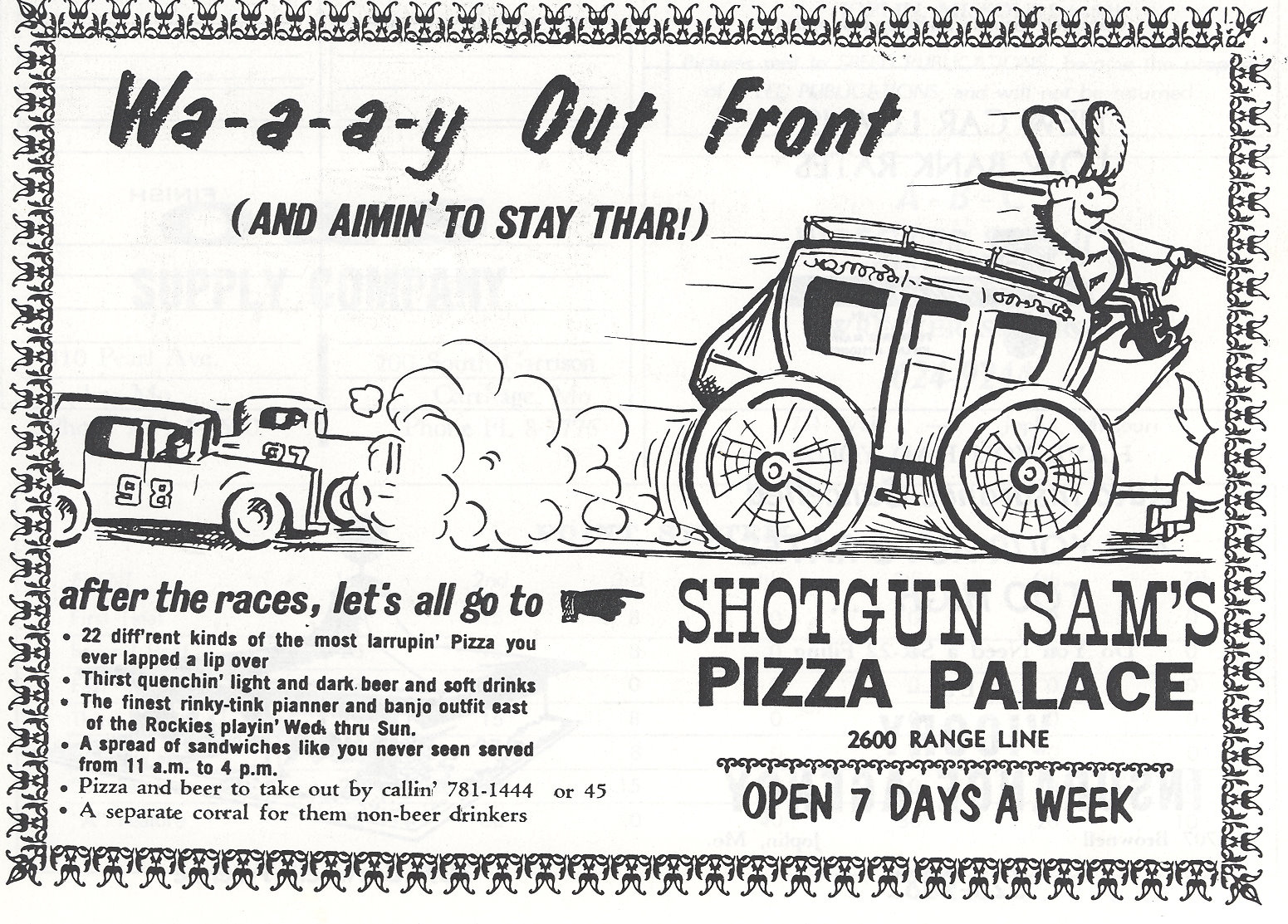 Doug Jones held a number of jobs as a young man, and one day was eating at a pizza place in Oklahoma City and decided that he could do a much better job. He quit his job with a drug company and developed plans for a western-themed pizza joint. He was clearly inspired by Shakey’s Pizza, which had begun in California in 1954 and had 342 locations by 1968 and shared many characteristics with Shotgun Sam’s.