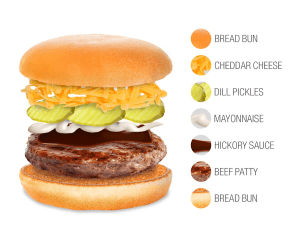 Charcoal burgers are prepared quite differently, being cooked on a rack over charcoal, rather than being cooked on a gas grill or on the flat-top grill one uses to make a fried onion burger. Oklahoma City charcoal burgers are often thinner than other burgers and traditionally topped with hickory sauce. Hickory sauce is similar to barbecue sauce, but usually thinner with a pronounced tomato/umami character. Speaking of hickory sauce…