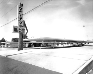 In 1953, Troy Smith of Shawnee, Oklahoma opened the Top Hat, a former root beer stand, to serve hamburgers and hot dogs. While traveling in Louisiana the next year, he saw a food stall with homemade intercom speakers that allowed customers to order from their cars. He contacted the innovator and had him make an intercom for the Top Hat. Smith also added a canopy to shelter the vehicles and hired carhops on roller skates to deliver food directly to the cars. Each customer received a mint with their order, a tradition held to today to remind customers that they are “worth a mint.”
