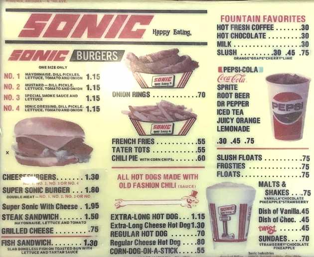 I don’t recall eating at a Sonic until I was in high school. PC West had open campus lunch for older students, and there was a Sonic a little over a half-mile east on 23rd Street.