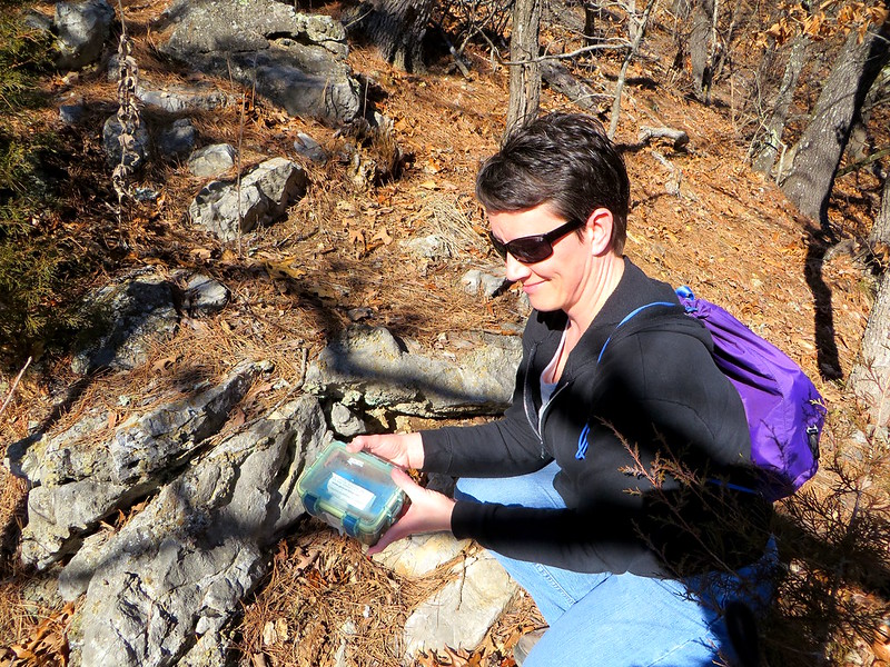 Wendy spotted another geocache in 2015 when we were hiking on the remnant of the Standing Rock Nature Trail at Lake Tenkiller in Oklahoma.