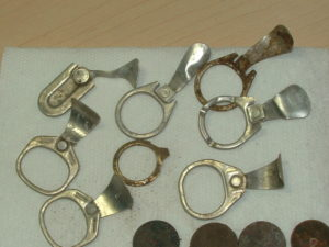 There was a metal-detecting craze in the late 1970s and 1980s. My father had a Garrett model that found many an aluminum pulltab despite his attempts to set its discriminator circuit to ignore them. Ernie Fraze invented pulltabs in 1959 and they quickly littered the earth. Things improved in the late 1970s when Daniel F. Cudzik invented the stay-on pop-top.