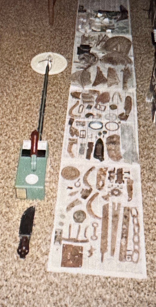 Our last shared metal detecting outing was in 1994 when we dug at an old homestead in the Missouri Ozarks. By then he had a simpler Bounty Hunter detector along with his original Garrett. We found a few items, and he later returned on his own to thoroughly explore the site, finding quite a collection of junk. Dad truly delighted in his finds, even though they were hardly treasures to anyone else.