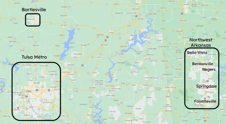 For comparison, the city of Tulsa, Oklahoma is the nearest big city to Bartlesville, where we live. As of 2020 Tulsa had over 400,000 residents in a metropolitan area of just over a million people. Bartlesville is about 45 minutes north of Tulsa and has about 37,000 residents.