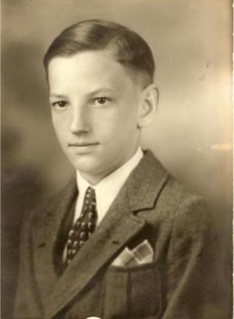 Dad was a pretty smart cookie, being named the 8th grade salutatorian among the 176 rural school 8th graders in Montgomery County. He posed for his 8th grade graduation photo in his first suit.