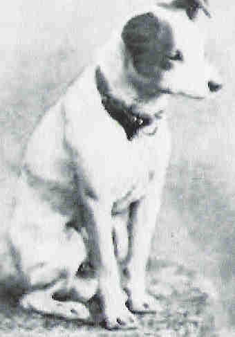 Today, if you go to Kingston upon Thames in England, you’ll find Nipper Alley, with a familiar logo on its sign. That’s because down that alley is a parking lot behind a branch of Lloyds Bank. Way back in 1895, that lot was the garden of a house, and when little Nipper died, he was buried there under a mulberry tree.