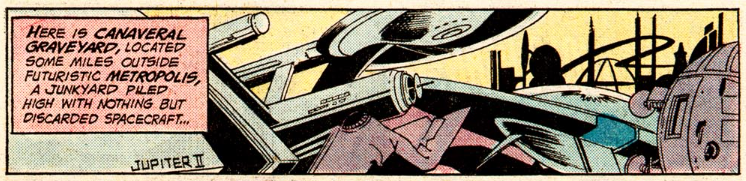I was intrigued, and eagerly read #210 and #211, and remember being scandalized that Star Trek‘s U.S.S. Enterprise was depicted as being in a junkyard. Sure, put the Jupiter 2 from the crummy Lost in Space there, but the Enterprise? How rude.